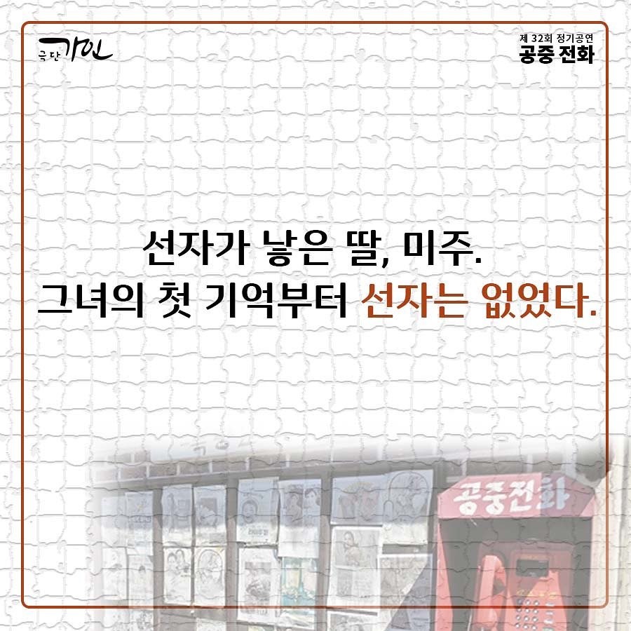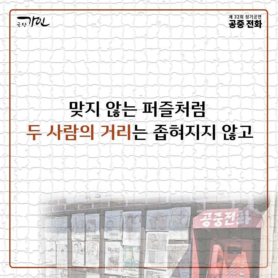 극단 가인의 제32회 정기공연 <공중전화>는 두 개의 이야기가 옴니버스로 이어지는 연극입니다.